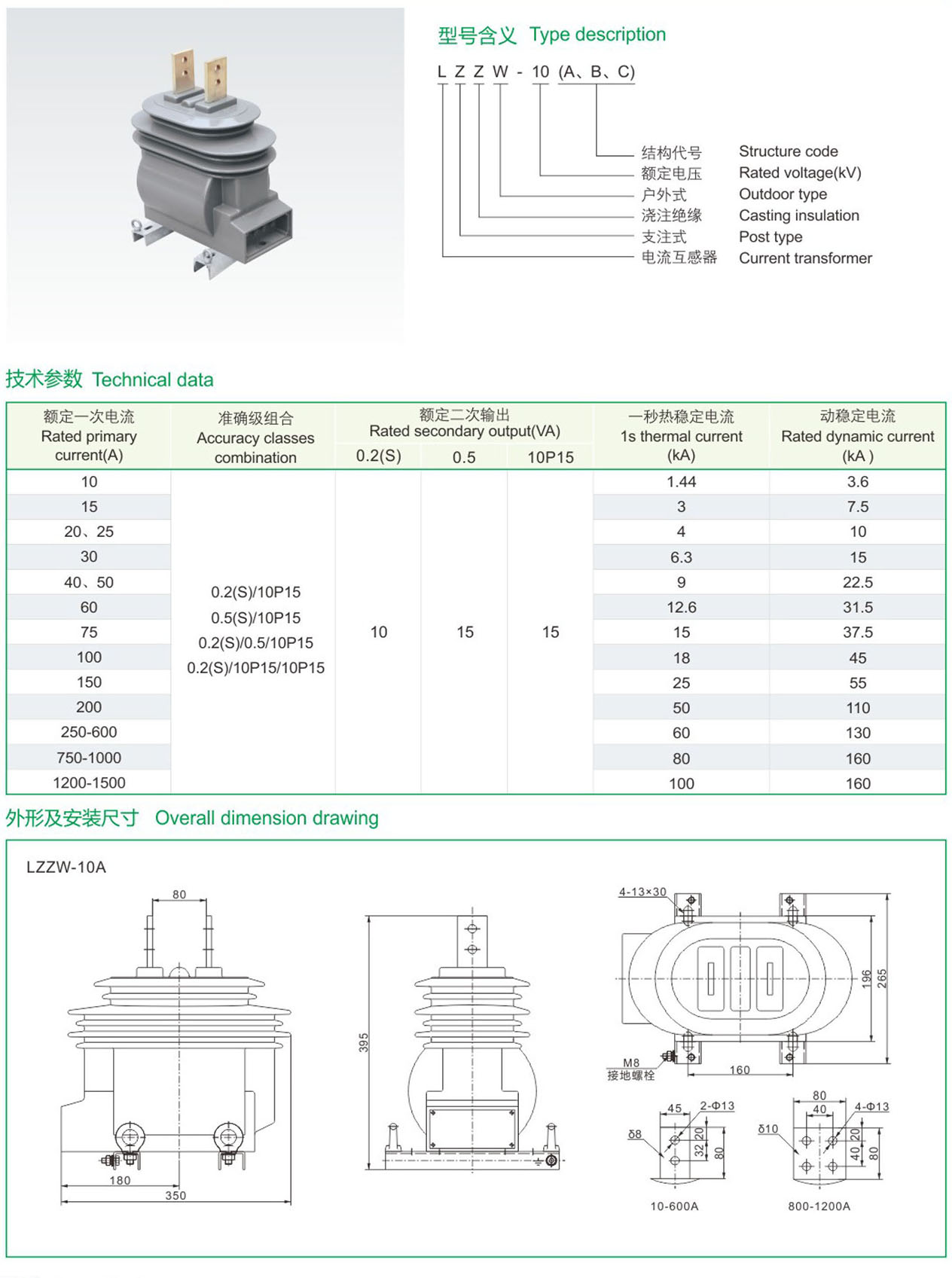 LZZW-10(A、B、C)型户外电流互感器